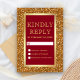 Cartão RSVP Casamento Vermelho Marrom Elegante com Brilho de F