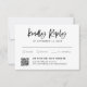 Este cartão de resposta de casamento chic e na moda, preto e branco é o RSVP perfeito para ser enviado se você tiver ambos os convidados mais tradicionais que preferem responder por e-mail, e também aqueles que responderiam por preferencialmente online. Este simples cartão orçamental funcionará para todos. Os convidados podem preencher a parte superior e devolver o cartão por e-mail, digitalizar o código QR ou ir para o site listado na parte inferior. A escrita casual moderna cria um olhar informal e totalmente moderno.