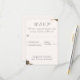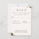 Design apresenta uma elegante borda rosa nos cantos superior esquerdo e inferior direito. Design segue o formato correto para um cartão de resposta de casamento. O texto é exibido em uma fonte prateada elegante. O reverso exibe uma cruz com dois aquecimentos, um em cada lado. As iniciais da noiva e do noivo são mostradas em corações com letra Nupcial branca. A delicada cor de fundo é conhecida como "Neve" e incorpora pureza e frescura com sua matiz suave mas quente. Cor perfeita para o papel de carta de casamento! Projetado para coordenar com a suíte de Casamento de Graça Católica.