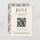 Cartão RSVP Classic Ivory Damask Rococo Pattern Wedding QR