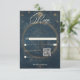 Entra num reino celestial sonhador com o nosso cartão de resposta de casamento com o tema vintage com o código qr. Inspirados pelos mistérios do cosmos, nosso design apresenta um pano de fundo azul-da-meia-noite adornado com estrelas de ouro delicadas, criando um horizonte celestial mesmerizante. Uma graciosa lua crescente de marfim agarra o céu, acrescentando um toque de elegância eterno. Com fontes clássicas que lembram eras passadas, essas cartas evocam um sentimento de nostalgia e romance. Vire-se para revelar um gráfico vintage cativante de um sereno na lua, completando o fascínio celeste. Ilumine a sua história de amor com charme celeste e convide os seus convidados a embarcar numa viagem celestial convosco. Criado pela imprensa simplesmente de farmácia.