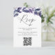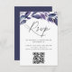 A placa Elegante de RSVP botânica apresenta folhas de cor d'água roxa e azul e folhagem com letras escura off-black. Personalize com as instruções de RSVP desejadas e personalize o código de QR para direcionar os convidados para o seu site de eventos para RSVP.