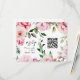Aquarela inspirou um fundo de design de magnólia de pénia. Texto preto e código qr na frente sobre design. Texto preto sobre fundo branco atrás.