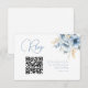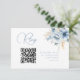 Adicione um toque de elegância moderna ao seu casamento com este Cartão RSVP de Código de Código QR de Primavera Floral Azul Elegante. Apresentando um design sofisticado com delicados florais azuis e florais inspirados em primavera suave, esta placa RSVP torna a resposta fácil para seus convidados.