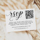 Cartão RSVP Código QR de casamento em elegante escrita preta