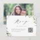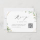 Folhagem botânica de cor aquática russa verde e folhas de folha de ouro falsas e estrutura geométrica, com script RSVP de tendência, simples e elegante, cartão Rsvp de código QR de excelente para casamento rústico de verão verde e ouro, casamento de jardim botânico de primavera. Ver todas as peças correspondentes na coleção