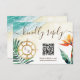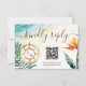 Monograma de bússola dourada moderna e elegante Convite Cartão RSVP de casamento de destino Adicionar seu código QR