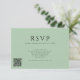 Cartão RSVP Código QR mínimo casamento verde sábio moderno