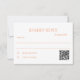 Inspire uma resposta rápida com cartões de resposta de casamento mostrando uma solicitação de RSVP em uma fonte serif clássica. Um modelo de caixa de verificação simples aparece na parte inferior ao lado de um código QR útil que você pode usar para direcionar seus convidados para seu site. Personalize-o com seus próprios detalhes. Para mais personalização (cor de fundo, estilo de fonte e cor), clique no link "Personalizar" e use nossa ferramenta design para modificar esse modelo.