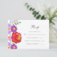 Este cartão floral fiesta floral quinceanera rsvp é uma bela maneira de pedir resposta aos convidados. O cartão floral vermelho e roxo coordena-se com a coleção floral de fiesta vermelha bonito encontrada nesta loja.