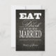 Coma Bebida e seja casado - Cartões RSVP de Casamento tema damasco Preto Elegante. Imã salve o dia de convites