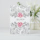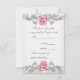 Convite de confirmação da Primeira Sagrada Comunhão das meninas rosa damasco elegante. Esta bela confirmação da primeira comunhão cinza prata e rosa é facilmente personalizada para o seu evento, adicionando os detalhes do evento, estilo de fonte, tamanho e cor da fonte e texto.