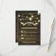 cartões de confirmação de CASAMENTO RÚSTICO NO CAMPO com fundo de madeira desgastada, luzes cintilantes e tipografia estilosa com uma faixa.