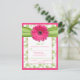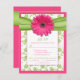 Cartão de resposta de escolha de refeição de casamento com flores rosa e verde em damasco, com gerbera rosa. Linda flor de gerbera rosa combinada com um padrão floral vintage em verde chartreuse em damasco e fita simulada.