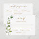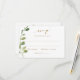 Cartão de Confirmação de Presença para Casamento com Folhagem de Eucalipto: Este cartão de confirmação permitirá que seus convidados escolham sua música favorita e façam sua escolha de refeição (no verso). Se você não precisar disto, pode excluir alguns ou todos os elementos no verso.