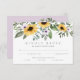 Celebre seu casamento especial no estilo country com nossa elegante resposta RSVP de casamento de girassol no estilo country por design de casamento. O design apresenta a nossa cor d'água pintada à mão, ouros amarelos girassóis, flores violetas brancas roxas, e verde natural arranjado para criar este elegante arranjo de país. Os detalhes de RSVP são lindamente projetados para fazer este convite de casamento simples, mas elegante, ao estilo do país. Todas as flores são pintadas manualmente pela Paparia de Moodthologia.