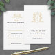 Crista de copas com mão de folhagem desenhando monogramas RSVP de casamento. Em tons clássicos de branco e ouro com texto preto. Convites correspondentes e outros itens correspondentes e opções de cores disponíveis. © Original Heraldry desenho e design por Sarah Trett para www.mylittleedenweddings.com em zazzle.