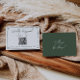 A simple and elegant calligraphy wedding scannable RSVP card. That is dark moss green and white with hand drawn frame and customizable QR code in the middle . Minimalist and chic with green typography .
