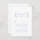 A mão russa ilustrou a coroa das folhas botânicas e a fonte clássica moderna em azul e branco, Simples e elegante. Cartão RSVP excelente para casamento clássico moderno, casamento formal simples, casamento botânico elegante. Veja todas as peças correspondentes na coleção.
