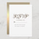 Simples, mínimo, tipografia, carta RSVP de casamento branco puro, com o lado moderno, brilhante metálico, ouro negro.