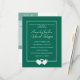 Este cartão RSVP de resposta do casamento apresenta o convite do casamento de um lado e o cartão RSVP do outro. Ele pode ser utilizado como alternativo para fazer convites para casamento e cartas RSVP separadas para seu dia especial. O espaço também permite que o retorno do RSVP seja enviado como cartão-postal. Há também um recurso de código QR que você pode usar no registro do casamento, no site do casamento e muito mais. Corações unidos design. A cor mostrada é esmeralda verde. Use a modelo para personalizar. Nota: ao usar a parte traseira como um RSVP, você desejará enviá-los inicialmente em envelopes (ou distribuí-los diretamente).