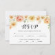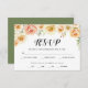 Tipografia de flores de pêssego de aquarela, carta de casamento RSVP com opção de refeição. Mostra uma bela borda de flores de cacto e folhas suculentas em pêssego e coral e seu texto. A palavra RSVP está na tipografia de script. A parte de trás é de cor verde sólida.