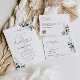 Cartão Rsvp de casamento com guião preta e folhagem verde-aquarela.