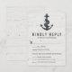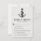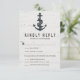 Uma âncora em forma de quadro colateral em um fundo "parecido com madeira" de cinza clara. Banner na âncora lê RSVP. Todo texto pode ser personalizado. As opções no RSVP incluem seleções de entrada. Perfeito para um casamento náutico, especialmente se for para o olhar rústico ou vintage.