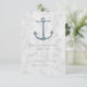 Perfeito para um casamento temático náutico é este Cartão de Resposta de Casamento de Âncora Rústica com uma âncora azul num fundo de cinza de luz. Este cartão RSVP clássico e simples é fácil de personalizar com seus detalhes de casamento. Localize mais opções de personalização clicando em Personalizar.
