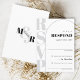 Personalize este moderno e elegante cartão de resposta de convite de casamento design preto e branco com grande tipografia RSVP no lado esquerdo da carta atrás de um simples arco em tipografia minimalista, clássica, preta, com um grande monograma clássico e ousado no lado traseiro - criado a corresponder ao único Convite de Casamento de Foto Branco e Preto Ampersand. Introduza facilmente os seus textos na modelo para que seja seu! O convite de forma de arco correspondente (em várias cores modernas diferentes) e mais estão disponíveis - role abaixo para ver a coleção. Solicitações personalizadas de design e perguntas de modelo são sempre bem-vindas - clique no botão "mensagem" ou e-mail diretamente em: contact@figandlilyco.com, coração criado por Fig e Lily Studios - enviando bênçãos e obrigados!