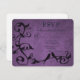 Envie aos convidados uma simples e elegante placa RSVP de Boas-Pratas com seu convite. O design de placa RSVP apresenta um fundo de grunge roxo adornado com uma vinha de folha e dois pombinhos em repouso. Personalize com a data de resposta e a opção de menu para a recepção. Material adicional disponível com esta design também. Precisa de ajuda para a personalização? Peço-lhe que me contacte e que elabore a redação e os pormenores para que este design seja ajustado para vossa satisfação.