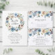 Cartões RSVP florais na moda e elegantes com uma borda superior de flores brancas, beige e azuis acentuadas por verde-luxuoso. Personalize o design adicionando seus detalhes de casamento, como RSVP por data e opções de janto. Os cartões de resposta de casamento são perfeitos para casamentos de primavera e verão e foram projetados para coordenar com nossa coleção de casamento Blooming Beauty.