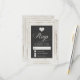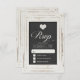 Esta placa RSVP de casamento vintage chic apresenta uma imagem impressa de um quadro de madeira rústica com lavagem branca com uma inserção de aparência de quadro chalkboard. O estilo tipográfico de letras adiciona elegância e romance. Perfeito para um casamento vintage, rústico ou country.