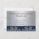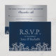 Um belo marinho azul-escuro JEWEL TONED e um cartão de resposta de casamento prateado e rsvp com um exótico sari ornamental inspirado pela Índia, o padrão MEDALLION, COM um DESIGN FLORAL E LOTUS SUNBURST. Este elegante e belo convite de casamento ao estilo indiano é perfeito para qualquer ocasião formal COM UM TEMA ALADDIN INDONÉSIO DA ÁSIA ORIENTAL OU NONAS ARABIANAS. Projetado por Chrissy H. Studios, LLC. Todos os Direitos Reservados.