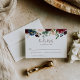 Cumprimente seu evento de casamento outono com este cartão de casamento de flores clássicas de rico. O design apresenta lindas flores rosa, pincéis, azuis, marinhos e burgundy pintadas manualmente com folhas verdes, bem agrupadas em buquês elegantes para embelezar seus cartões de convite para eventos.
