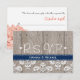PLACAS DE RESPOSTA DE CASAMENTO DE Pêssego bonito DE coral HIDRANGEA COM cerca de madeira, fundo antigo de cor damasco e faixa azul de marinho coagulada, parecem design nas costas que podem ser PERSONALIZADAS PARA DIZER O QUE VOCÊ GOSTA NAS COSTAS. Este RSVP é perfeito para um país, uma fazenda, uma festa de jardim ou um casamento no estilo de barnyard, uma festa de aniversário ou um janto de noivados. Projetado por Chrissy H. Studios, LLC. Todos os direitos reservados.