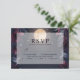 Preencha sua suíte de casamento com esta elegante placa RSVP "Lua do Jardim da Meia-Noite". Apresentando uma lua de cheio brilhante e detalhes florais ricos em tons de burgundy profundo e de meia-noite, este cartão com tema celeste é a forma perfeita de reunir respostas dos seus convidados. A atmosfera moderna do design dá o tom para uma noite mágica e romântica. Personalize com sua data de RSVP, opções de refeição e outros detalhes importantes para uma experiência perfeita que se alinha ao seu tema de casamento cósmico