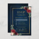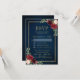 Marinho vermelho-escuro com cruz de cor-de-água, modelo de convite floral cor-de-rosa para casamento, com Dourada armação e ouro com folhagem botânica verde e folhas de eucalipto em fundo azul-marinho. Esta design fácil de personalizar pode combinar facilmente com as cores do casamento, estilos e temas e é uma escolha perfeita para o meio do outono ou casamentos no inverno. Você pode encontrar mais designs correspondentes na minha loja ou entrar em contato comigo se precisar de ajuda na personalização do design.