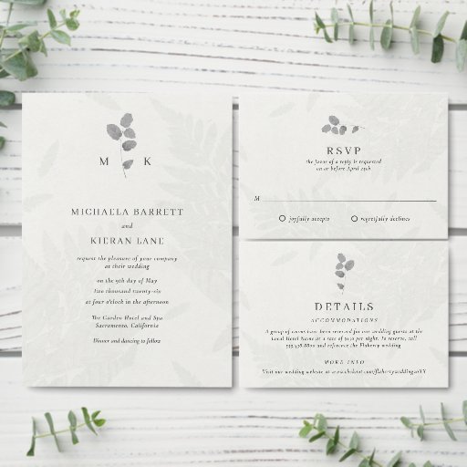 Colete as respostas dos seus convidados em estilo com este cartão de RSVP de casamento de folha botânica correspondente. Apresentando o mesmo padrão de folha falsa das cinzas luminosas que o convite, este cartão de resposta elegante é perfeito para casamentos modernos e inspirados na natureza. Personalize-o com o seu monograma, data de resposta e opções de refeição, se necessário. O design minimalista combina lindamente com casamentos de jardim, celebrações ao ar livre ou qualquer evento com uma paleta de cores suave e neutra.