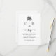 Este elegante cartão de cerimônia de núpcias preto e branco, é uma escolha perfeita para um casamento clássico moderno, um simples casamento formal, ou um elegante casamento de jardins botânicos com um ambiente tropical. A cerimônia de núpcias elegante e sofisticada, mas ao mesmo tempo simples e com toque rústico. Ele apresenta suas iniciais monogramas e uma bela ilustração de uma palmeira tropical no topo, seus detalhes de evento são mostrados abaixo em uma mistura de roteiro moderno e fonte clássica. Você pode personalizar facilmente este modelo clicando no botão "Personalizar este modelo" e escrevendo seus próprios detalhes. Você também pode personalizar a cor do plano de fundo na parte traseira e na mensagem personalizada (ou até mesmo adicionar algumas informações extras) clicando no botão "Editar usando a ferramenta design". Por favor, dê uma olhada na minha coleção de casamento onde você pode encontrar outros artigos de papelaria, como selos de borracha e etiquetas. E se tiver alguma pergunta ou sugestões sobre esta design, não hesite em contactar-me no Zazzle!