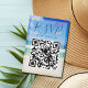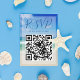 Este belo cartão RSVP de casamento de praia com o código QR do site apresenta uma linda foto das ondas do oceano para um casamento de destino. Fotografia de praia bonito, combinada com elegante tipografia azul, cria um cartão de resposta chic e moderno a um evento em uma ilha tropical.