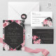 Cartão RSVP de Casamento de Rosas Rosa e Preto