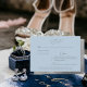 Cartão RSVP de Casamento Azul do Céu. Opção Três Enárvores. Opção de site para RSVP. Fonte moderna. Texto prateado. Imagem metálica de prata.