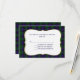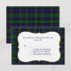 Cartãozinho tradicional de resposta ao casamento de xadrez tartana, com o padrão do clã Mitchell, ao fundo. Uma área de texto branco bordado com tom de ouro decorativo tem texto personalizado pronto para personalizar.