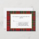 Carteira RSVP de resposta de xadrez tradicional adorável, com os padrões vermelho, verde, azul, amarelo e branco do Royal Stewart, em segundo plano. Uma área de texto em branco dourado tem texto personalizado pronto para personalizar.