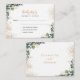 Um fundo branco decorado com verde de eucalipto e folhas de ouro e gotas falsas de ouro. Personalize e adicione a resposta por data e seus nomes.