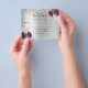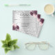 Por favor, note que este RSVP está no papel do folheto e é muito fino. Os envelopes não estão incluídos. Para placas RSVP mais espessas (mesmo design) visite nossa loja. Um fundo metálico de cor prateada falsa, decorado com cintilação cintilante e florais bordados e cor-de-rosa. Personalize e adicione a resposta por data e seus nomes.