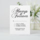 Cartão de Resposta de Casamento Sempre e para Sempre com Trendy e único, com um belo design de texto de tipografia escrito à mão a preto e branco. Este simples e elegante cartão RSVP dá o tom para um casamento clássico e romântico e é fácil de personalizar com seus detalhes de casamento. Clique em "Personalizar" para encontrar mais opções de personalização. A cor de fundo pode ser alterada para qualquer cor que você quiser.
