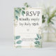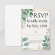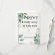 Um cartão RSVP de casamento refinado com folhas de cor verde-d'água e um delicado quadro de ouro. Perfeito para coletar respostas de convidados, este design elegante complementa suites de artigos de papelaria de casamento modernos e eternos, incluindo convites, menus e cartas de agradecimento.