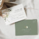 Boho White Rose Floral Sage Green Botanical Arch Elegante RSVP Card. Buquê rosa branca boêmia estilo RSVP Placa com flores elegantes e brancas e botânicos verdes em cores d'água impressas à mão. A cor verde de fundo sage é linda para casamentos modernos de boho e casamentos florais. Placa RSVP simples e imprimível para primavera, verão, outono (outono) e casamentos no inverno.